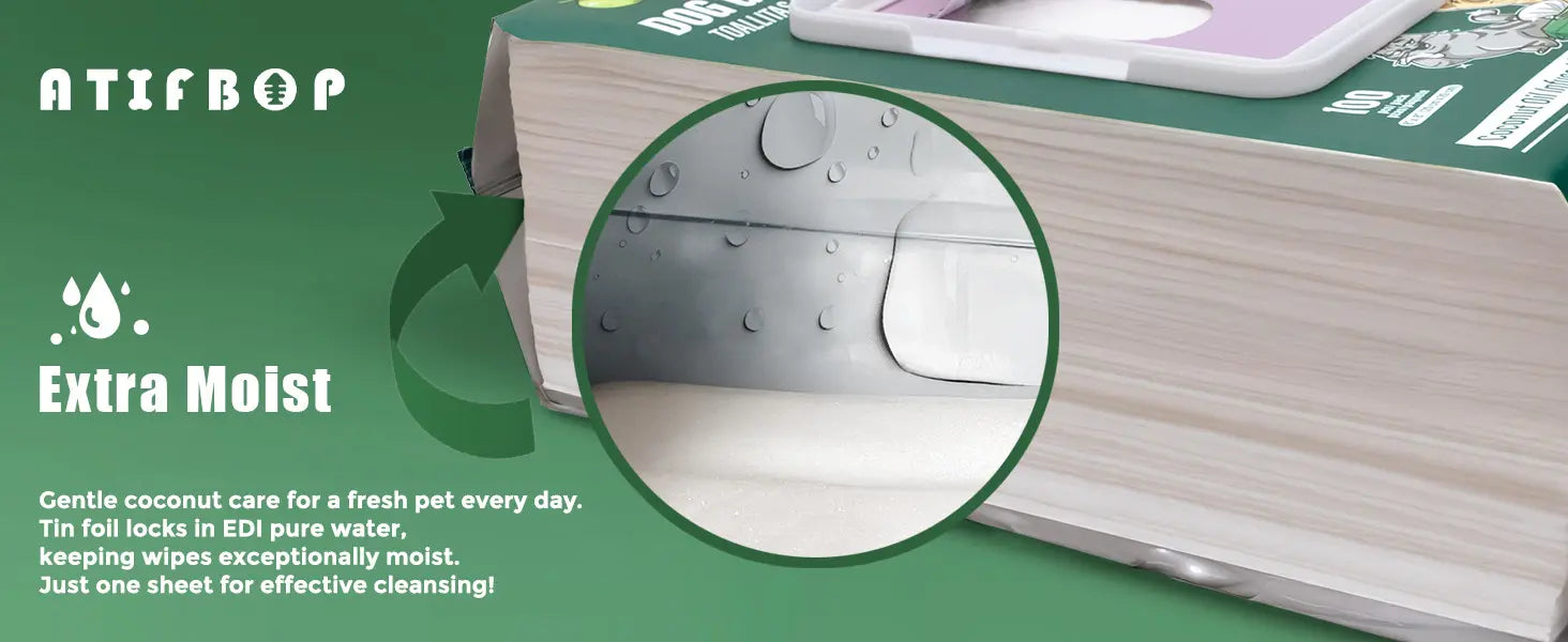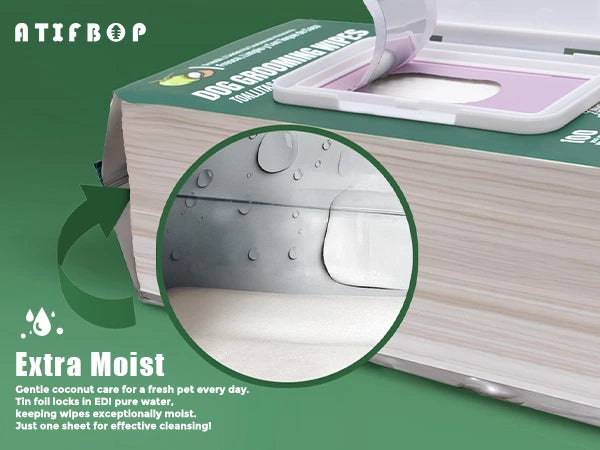 Aluminum Interior - The aluminum layer effectively locks drinking-grade EDI-RO filtered water within the pet wipes, keeping them moist and fresh while preventing any liquid degradation. Enjoy long-lasting, reliable wipes that stay ready to refresh and care for your pet.
