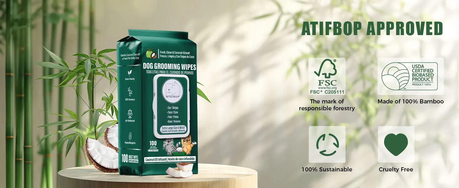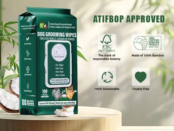 Coconut Oil - With bamboo fiber and coconut oil, this puppy wipes effectively removing dirt and odors. Coconut oil moisturizes every inch of your dog and cat.